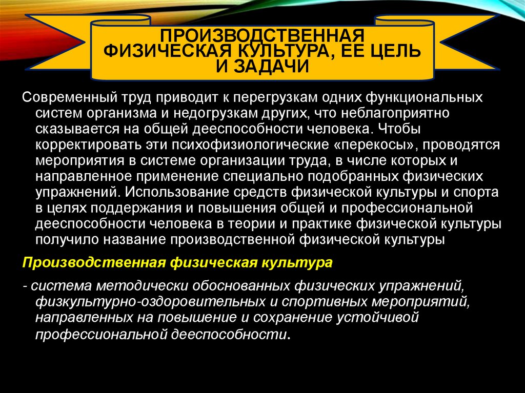 ПРОИЗВОДСТВЕННАЯФИЗИЧЕСКАЯ КУЛЬТУРА, ЕЕ ЦЕЛЬ