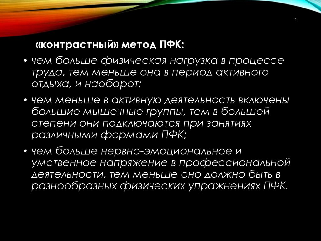 3. Влияние условий труда и быта специалиста на выбор форм, методов и средств ПФК.