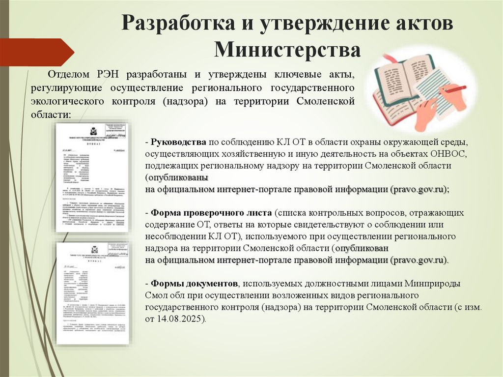 С 2025 года Минприроды Смол. обл. является одним из уполномоченныхорганов, ответственных за достижение национальной цели в системе оценки