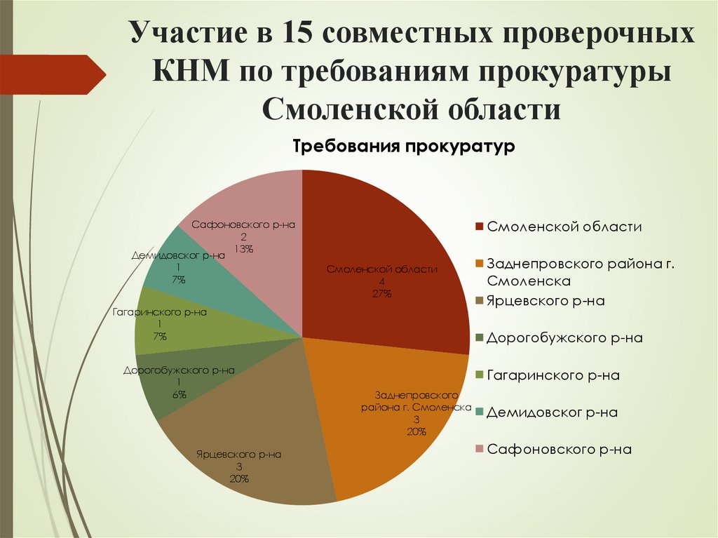 Участие в 15 совместных проверочныхКНМ по требованиям прокуратуры