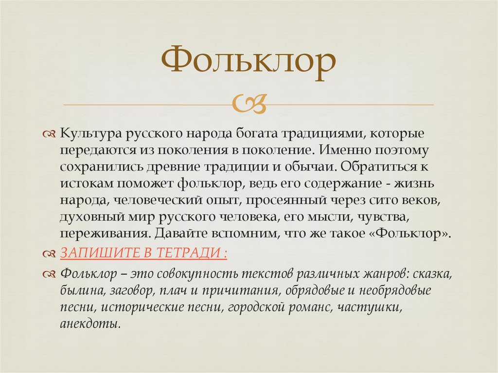 переживания. Давайте вспомним, что же такое «Фольклор».