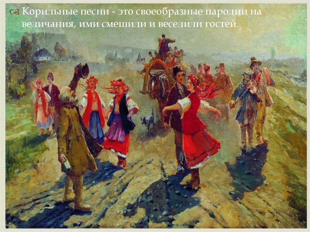 Корильные песни - это своеобразные пародии навеличания, ими смешили и веселили гостей.