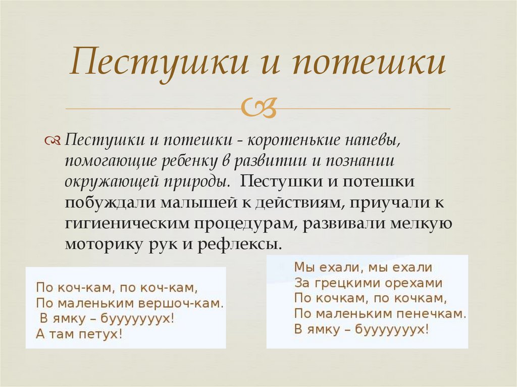 Пестушки и потешкиПестушки и потешки - коротенькие напевы,