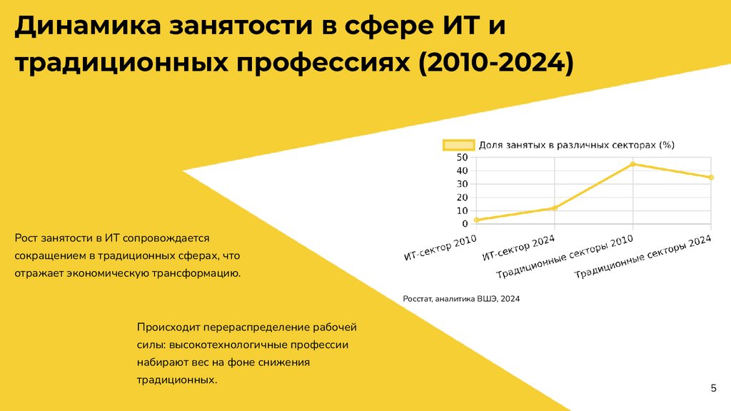 Динамика занятости в сфере ИТ итрадиционных профессиях (2010-2024)