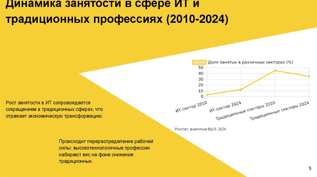 Динамика занятости в сфере ИТ итрадиционных профессиях (2010-2024)