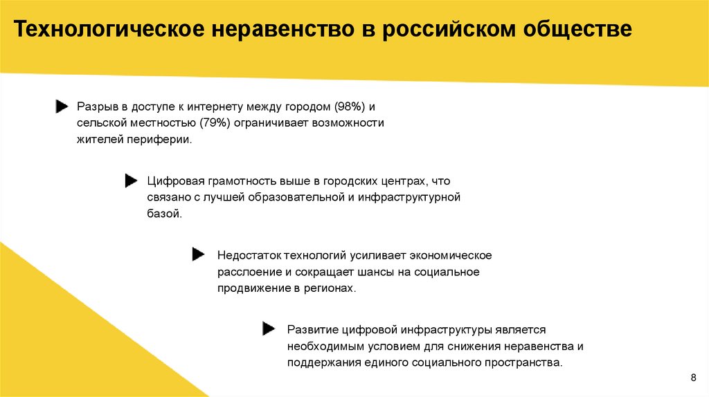Технологическое неравенство в российском обществеРазрыв в доступе к интернету между городом (98%) и