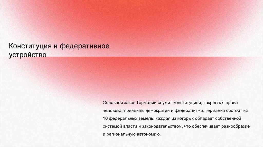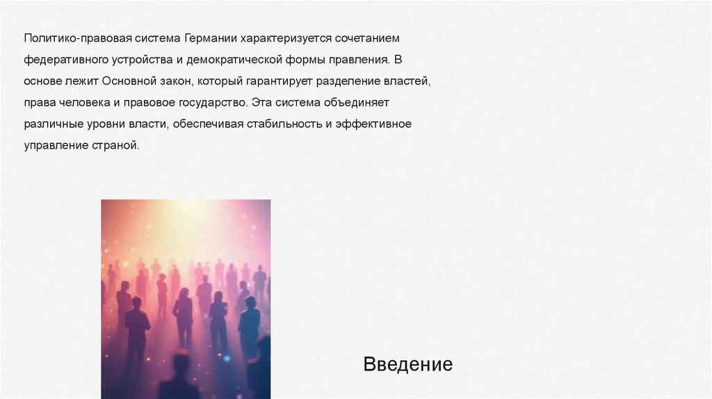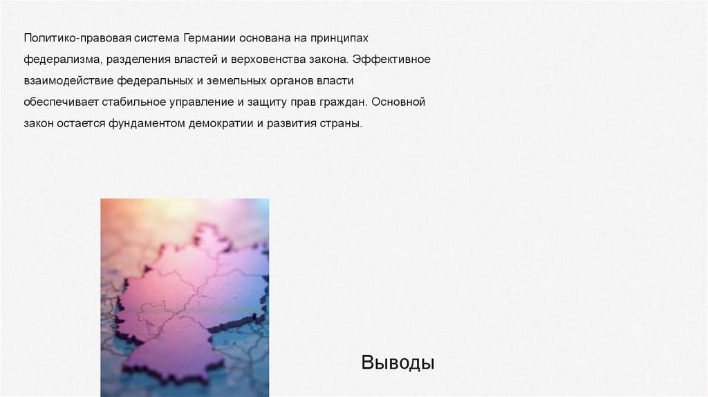 Политико-правовая система Германии основана на принципахфедерализма, разделения властей и верховенства закона. Эффективное