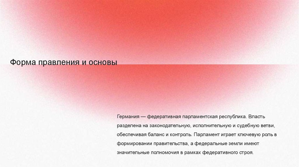 Форма правления и основыГермания — федеративная парламентская республика. Власть