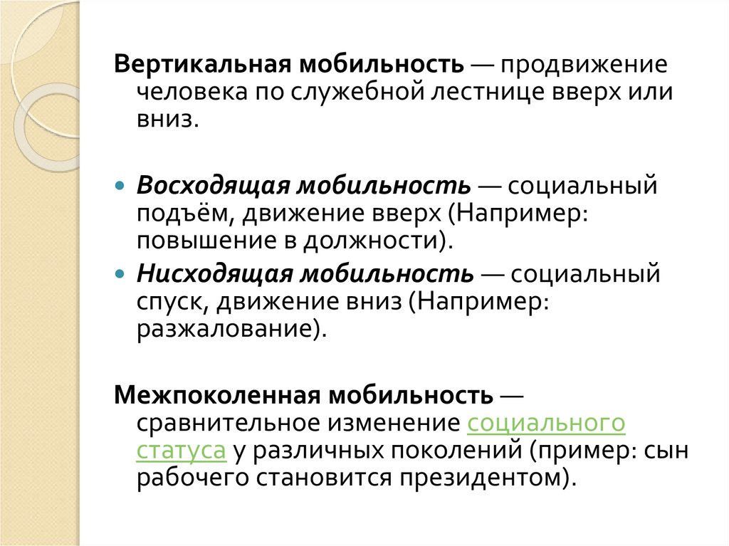 Вертикальная мобильность — продвижениечеловека по служебной лестнице вверх или