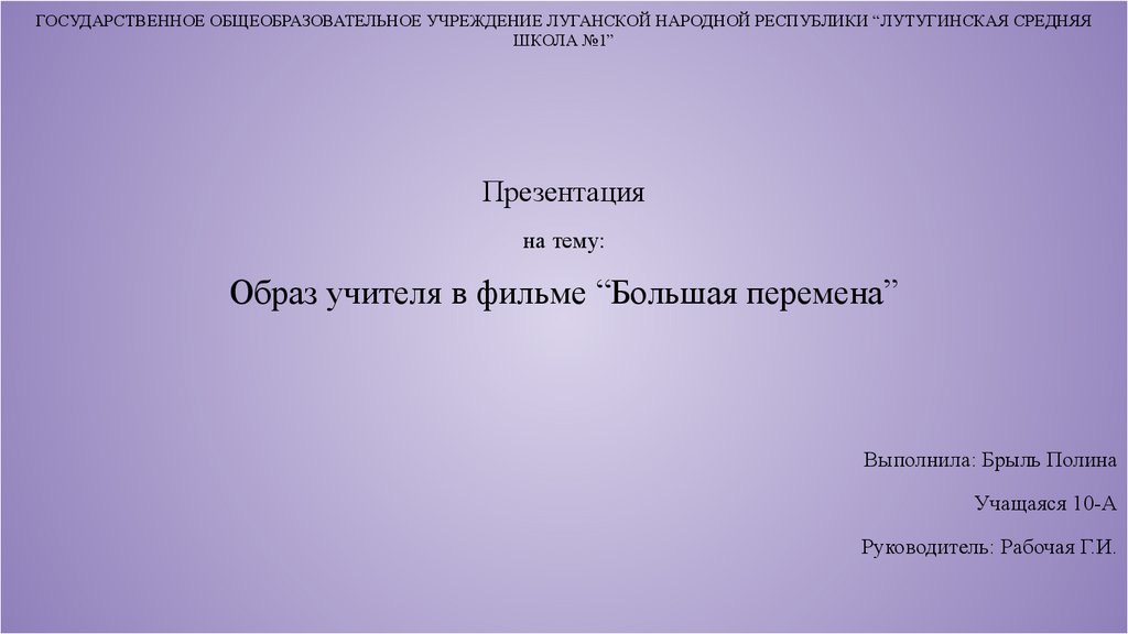 ГОСУДАРСТВЕННОЕ ОБЩЕОБРАЗОВАТЕЛЬНОЕ УЧРЕЖДЕНИЕ ЛУГАНСКОЙ НАРОДНОЙ РЕСПУБЛИКИ “ЛУТУГИНСКАЯ СРЕДНЯЯШКОЛА №1”