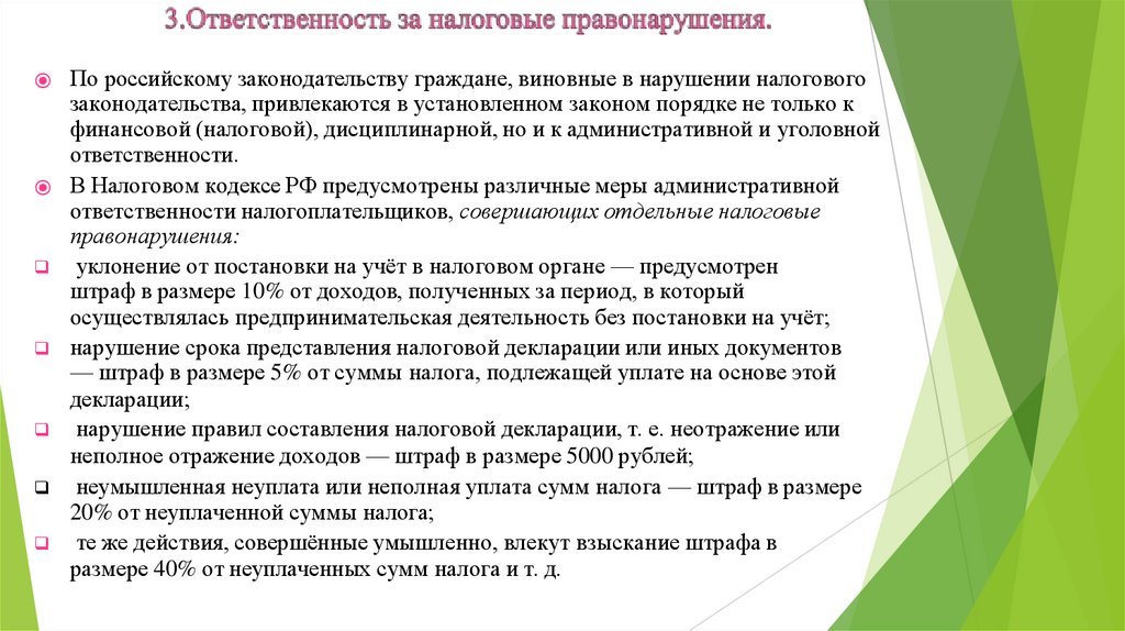 ответственности налогоплательщиков, совершающих отдельные налоговые