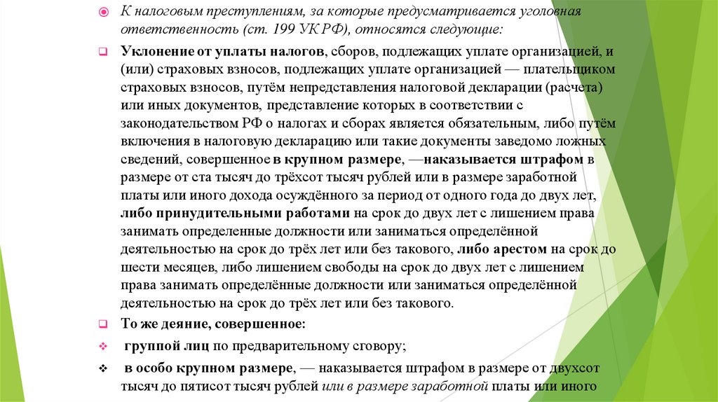ответственность (ст. 199 УК РФ), относятся следующие: