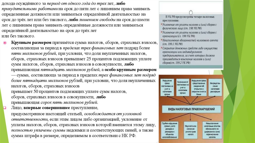 ⦿ Крупным размером признаётся сумма налогов, сборов, страховых взносов,