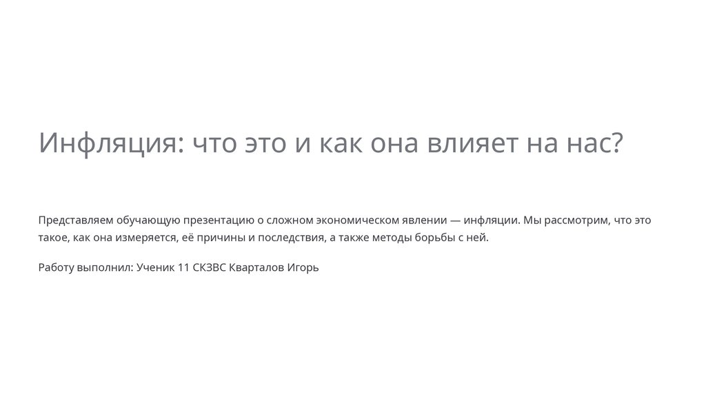 Инфляция: что это и как она влияет на нас?Представляем обучающую презентацию о сложном экономическом явлении — инфляции. Мы рассмотрим, что это