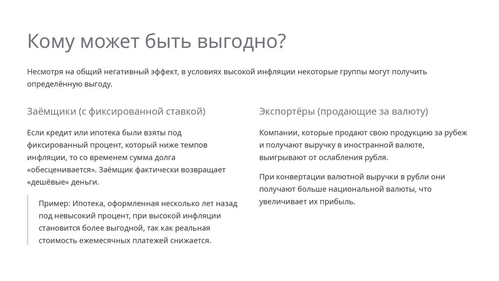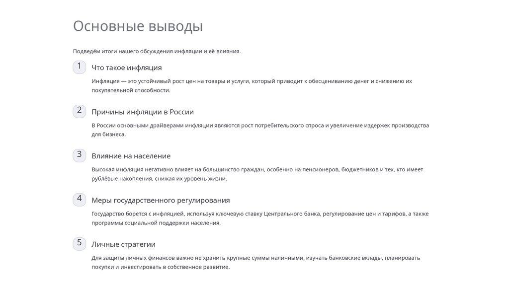 Основные выводыПодведём итоги нашего обсуждения инфляции и её влияния.