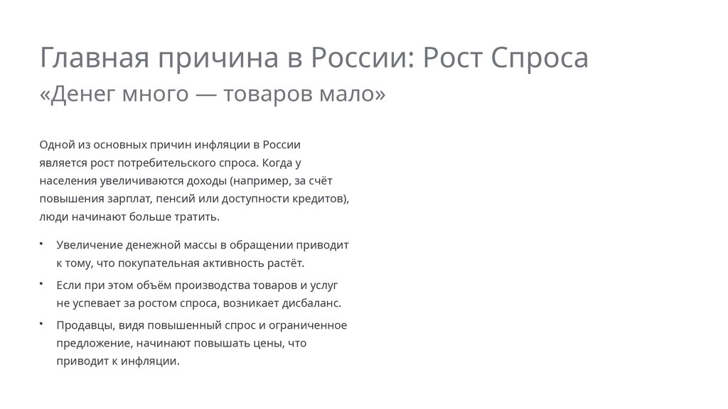 Главная причина в России: Рост Спроса«Денег много — товаров мало»