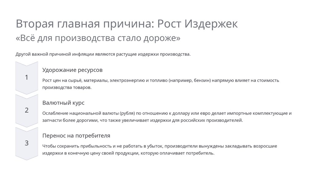 Вторая главная причина: Рост Издержек«Всё для производства стало дороже»