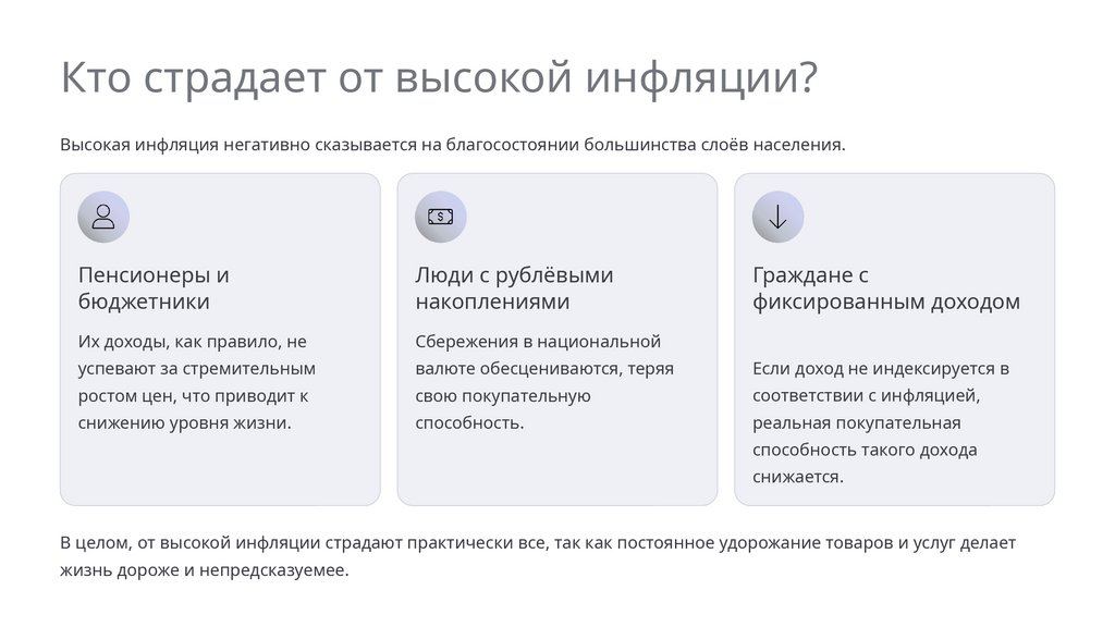 Высокая инфляция негативно влияет на большинство граждан, особенно на пенсионеров, бюджетников и тех, кто имеет