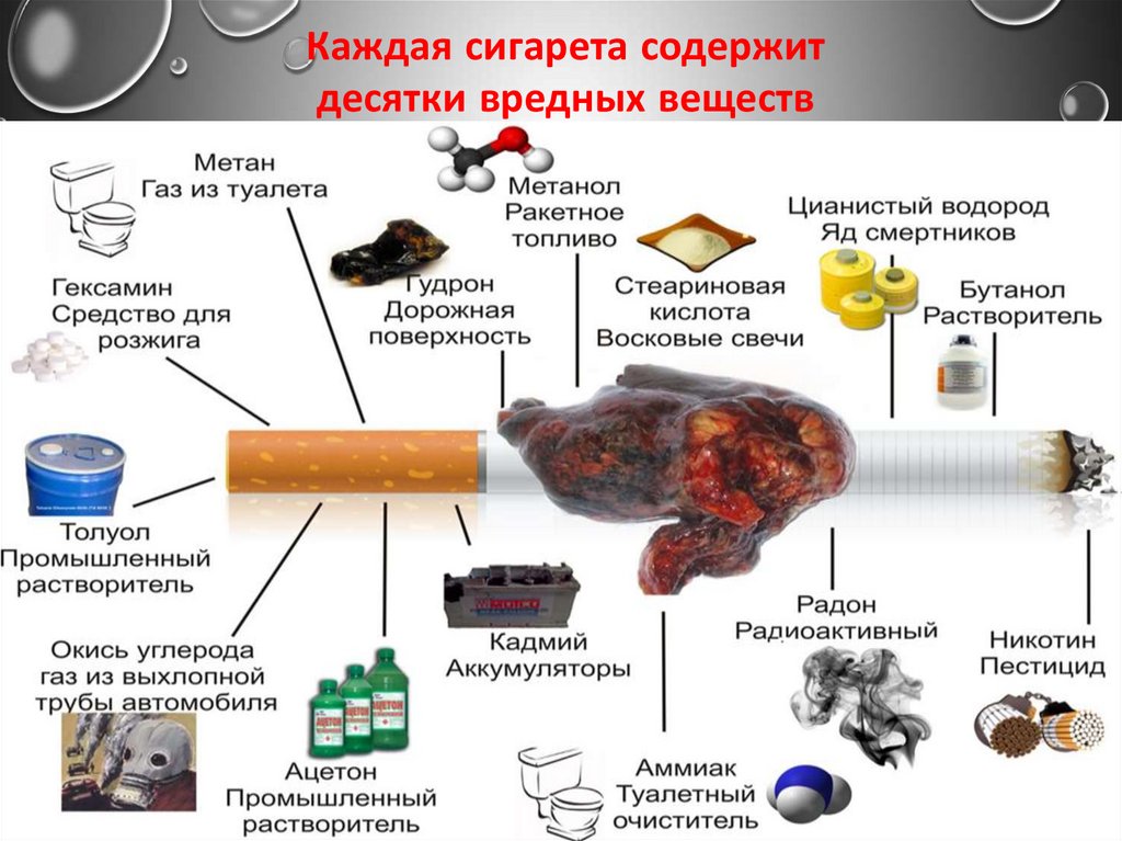 Каждая сигарета содержитдесятки вредных веществ