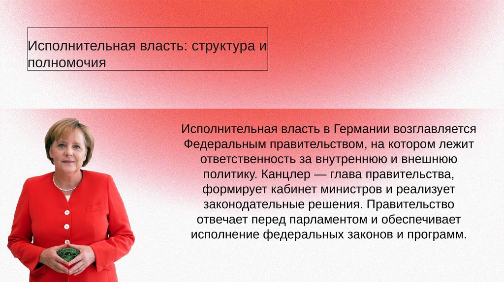 Исполнительная власть в Германии возглавляется