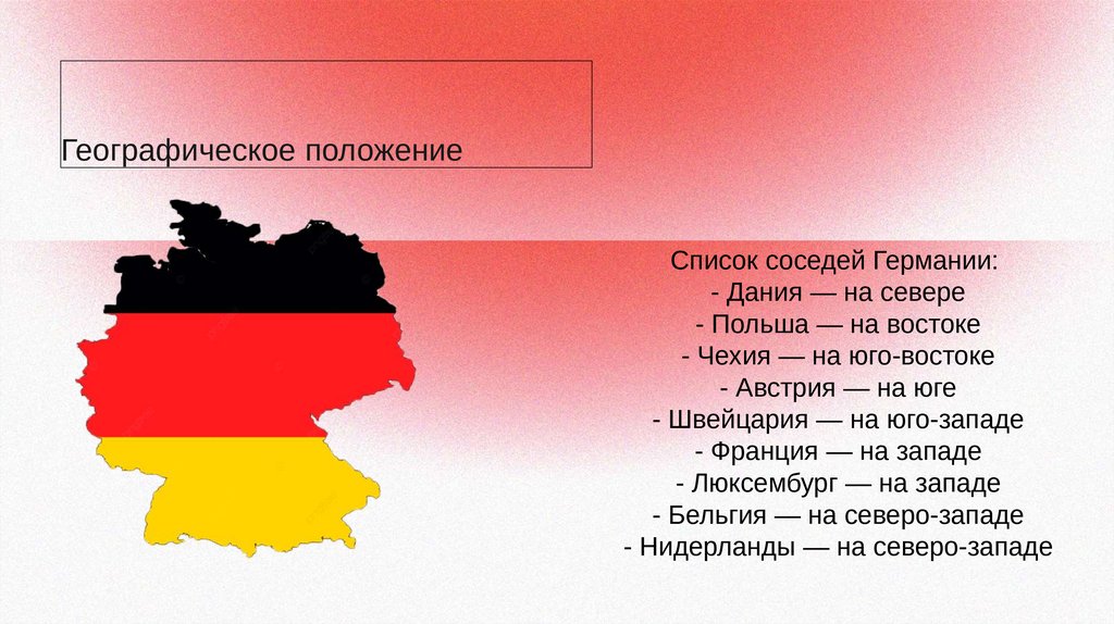 Географическое положениеСписок соседей Германии: