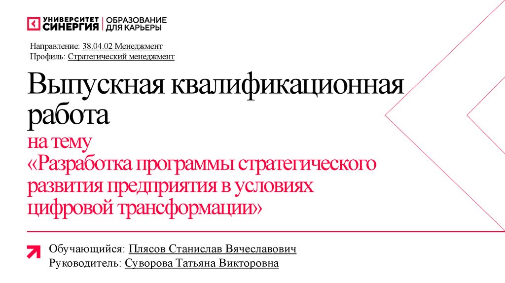Направление: 38.04.02 МенеджментПрофиль: Стратегический менеджмент