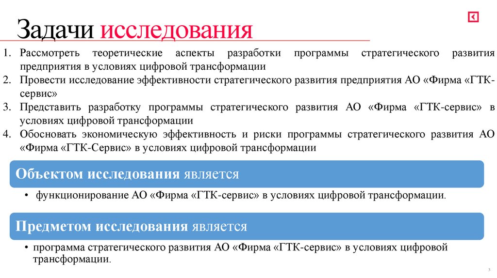 • программа стратегического развития АО «Фирма «ГТК-сервис» в условиях цифровой