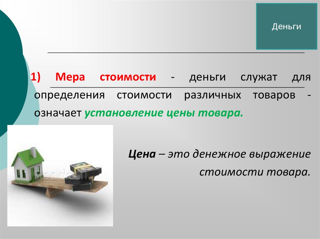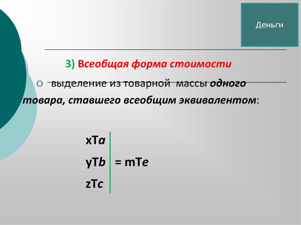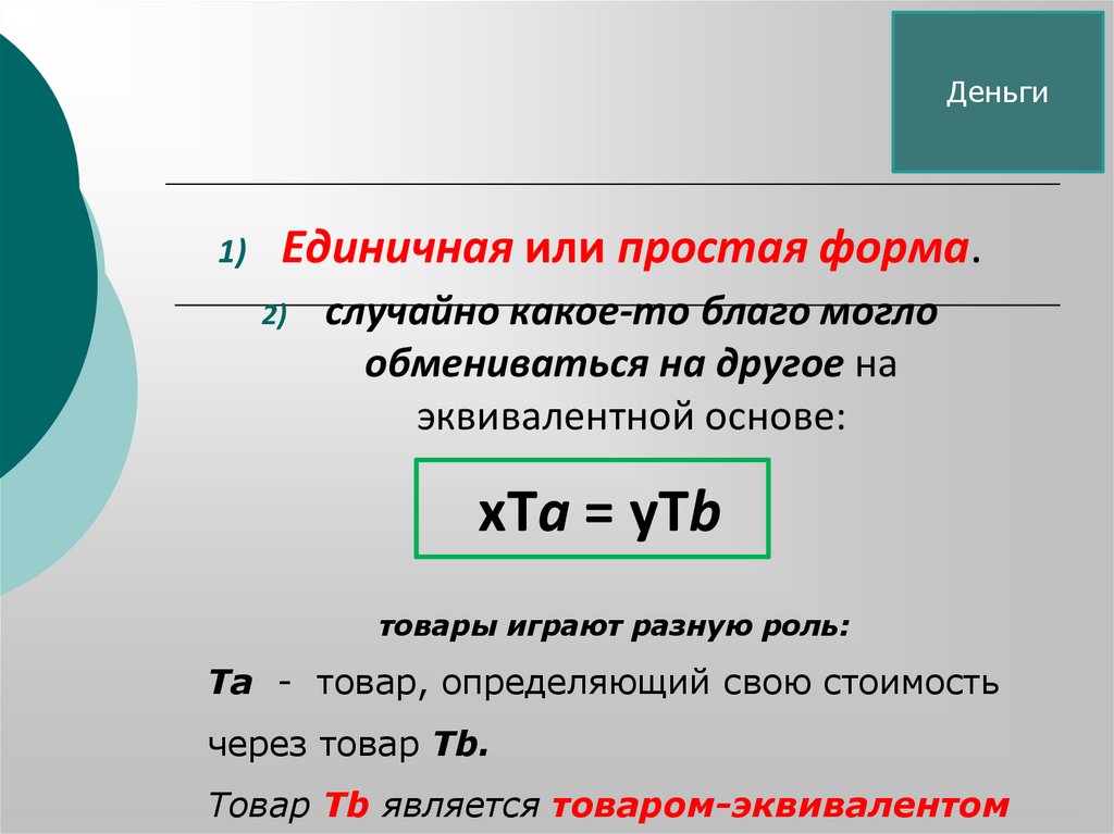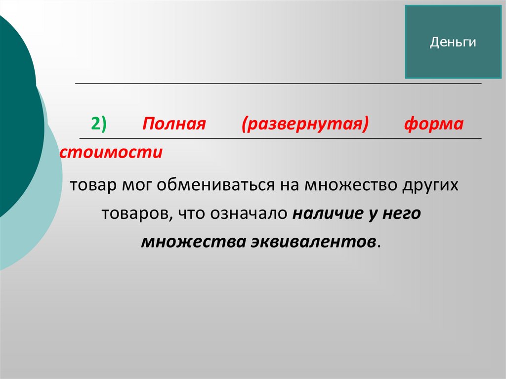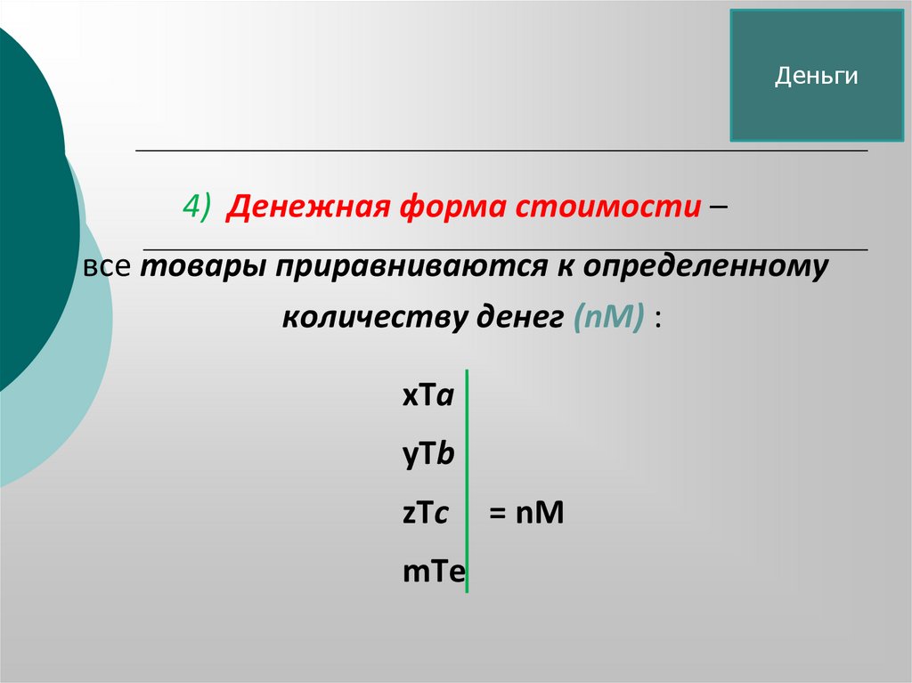 Деньги4) Денежная форма стоимости –