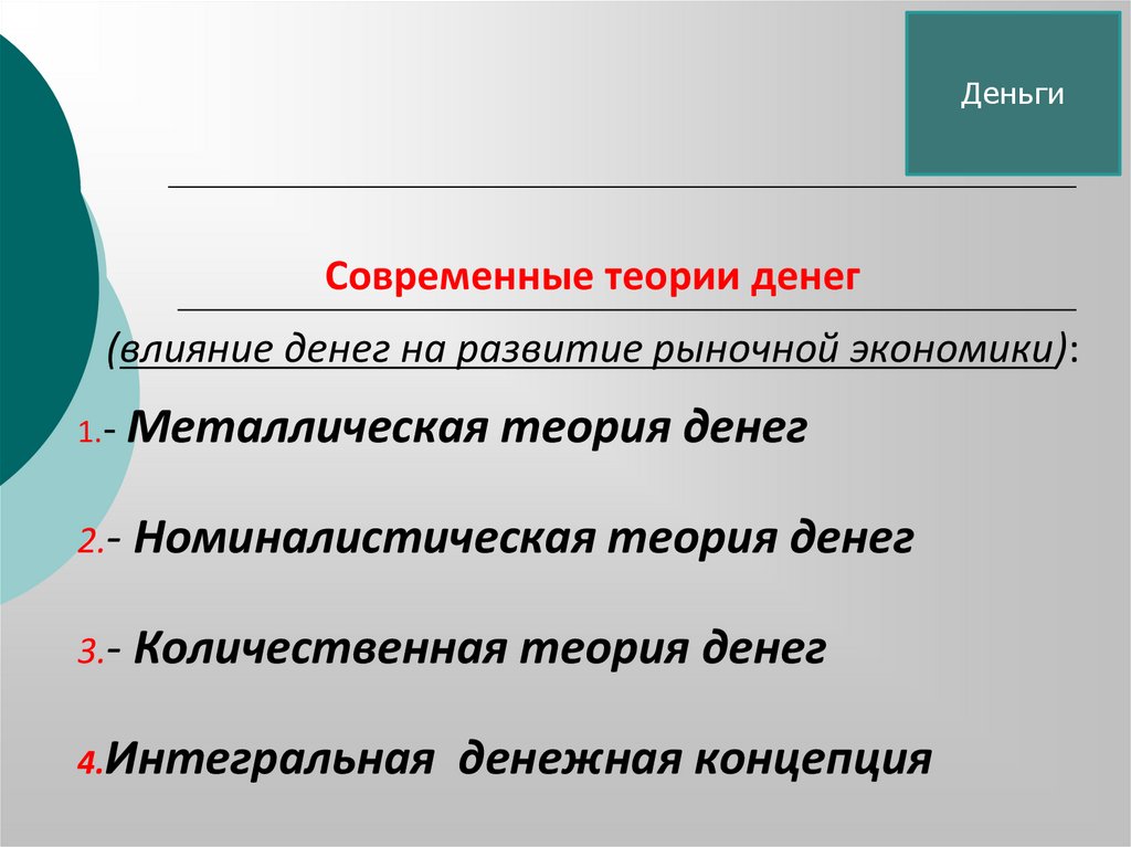 ДеньгиСовременные теории денег