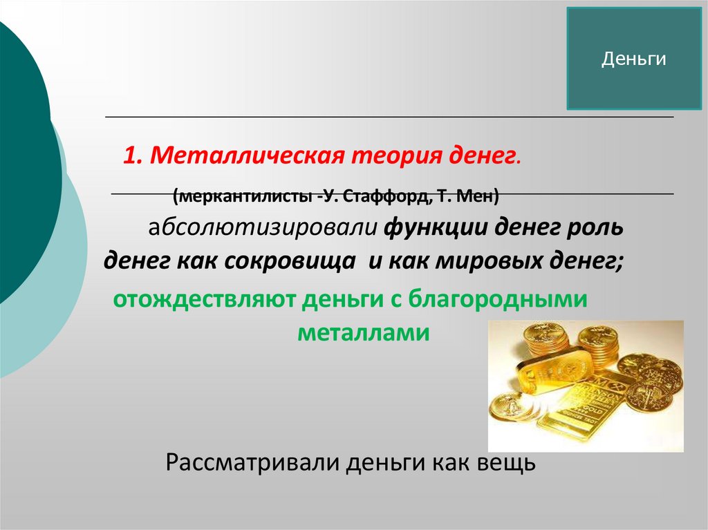 Деньги1. Металлическая теория денег.