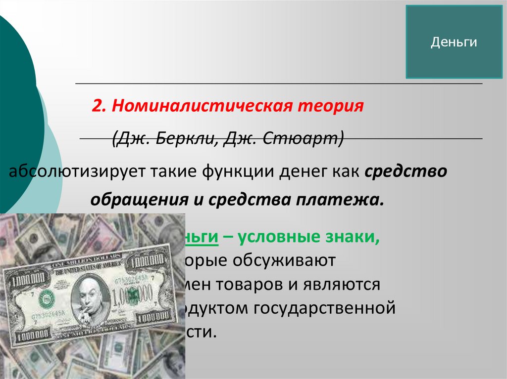 2.- Номиналистическая теория денег