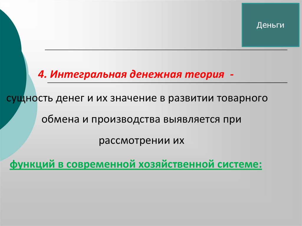 4.Интегральная денежная концепция