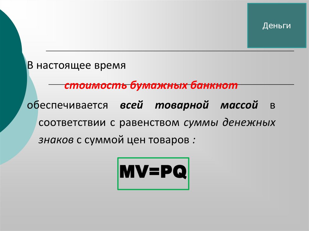 ЗАКОН ДЕНЕЖНОГО ОБРАЩЕНИЯ:MV=PQ