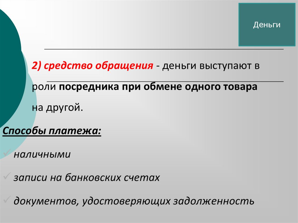 функции средства обращения и средства