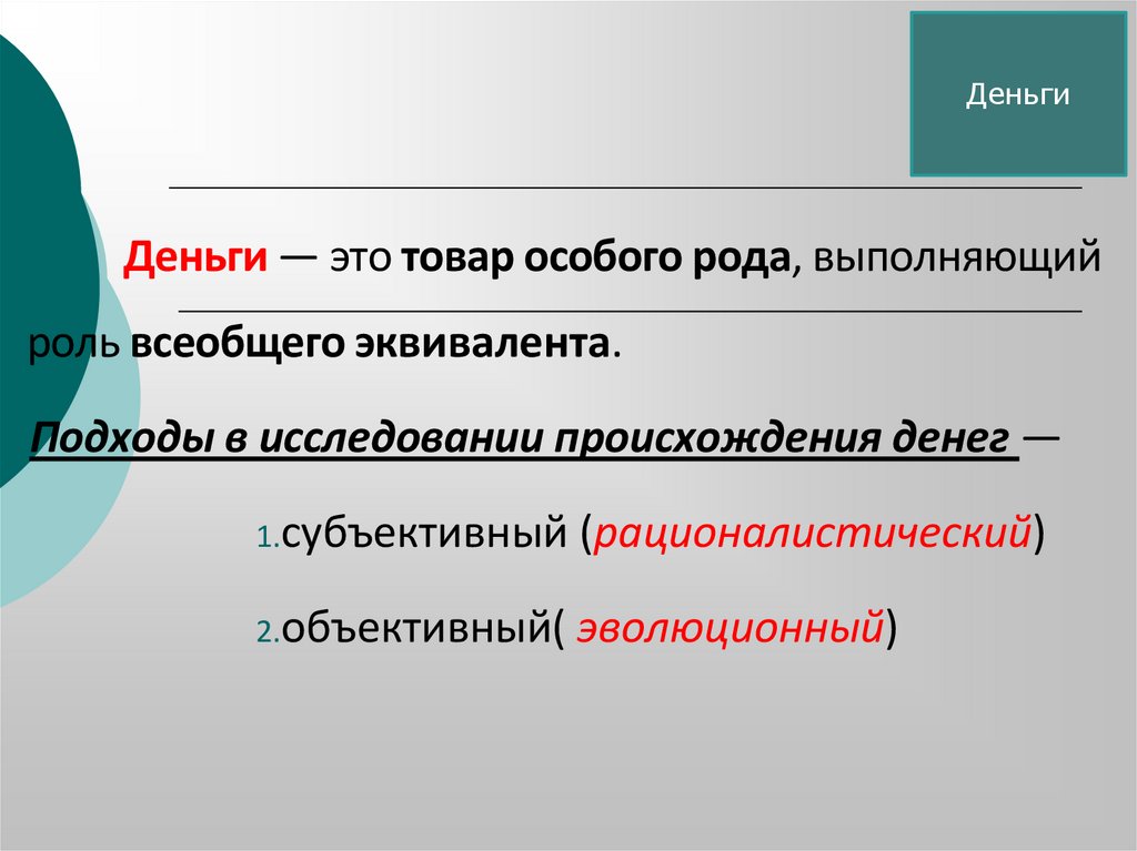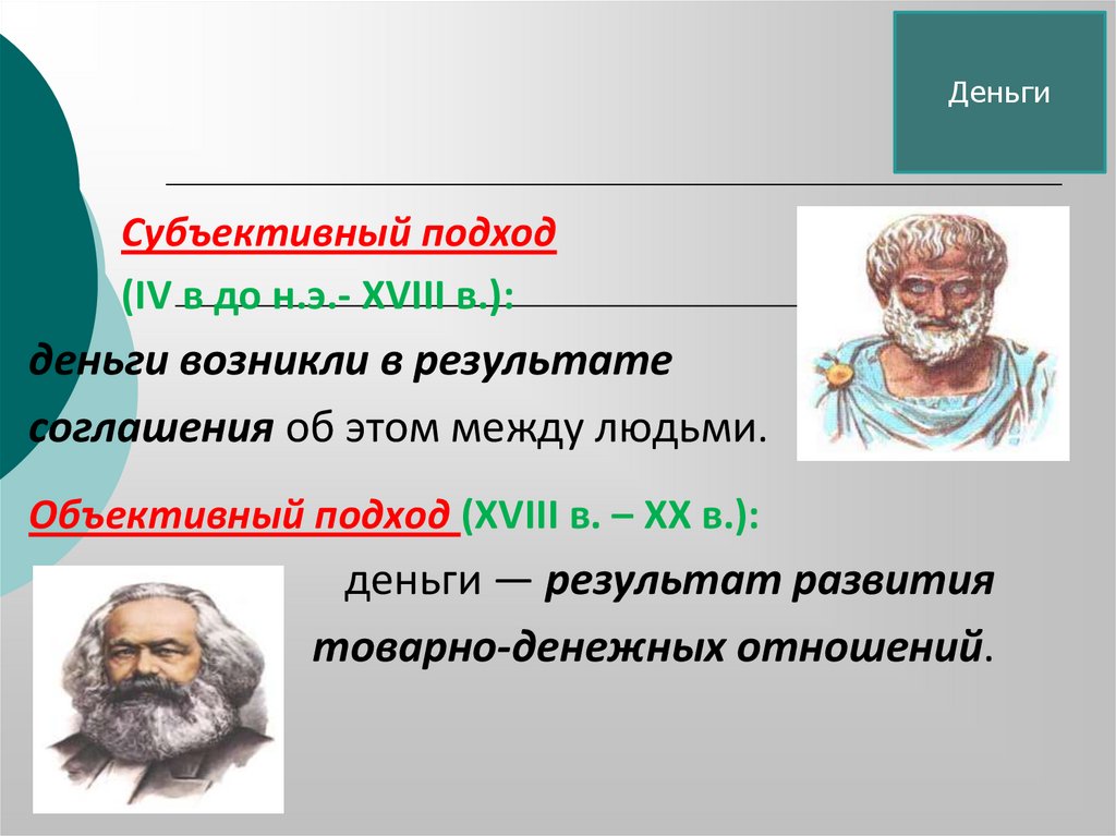 ДеньгиСубъективный подход
