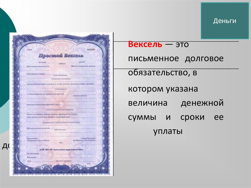 - векселя;