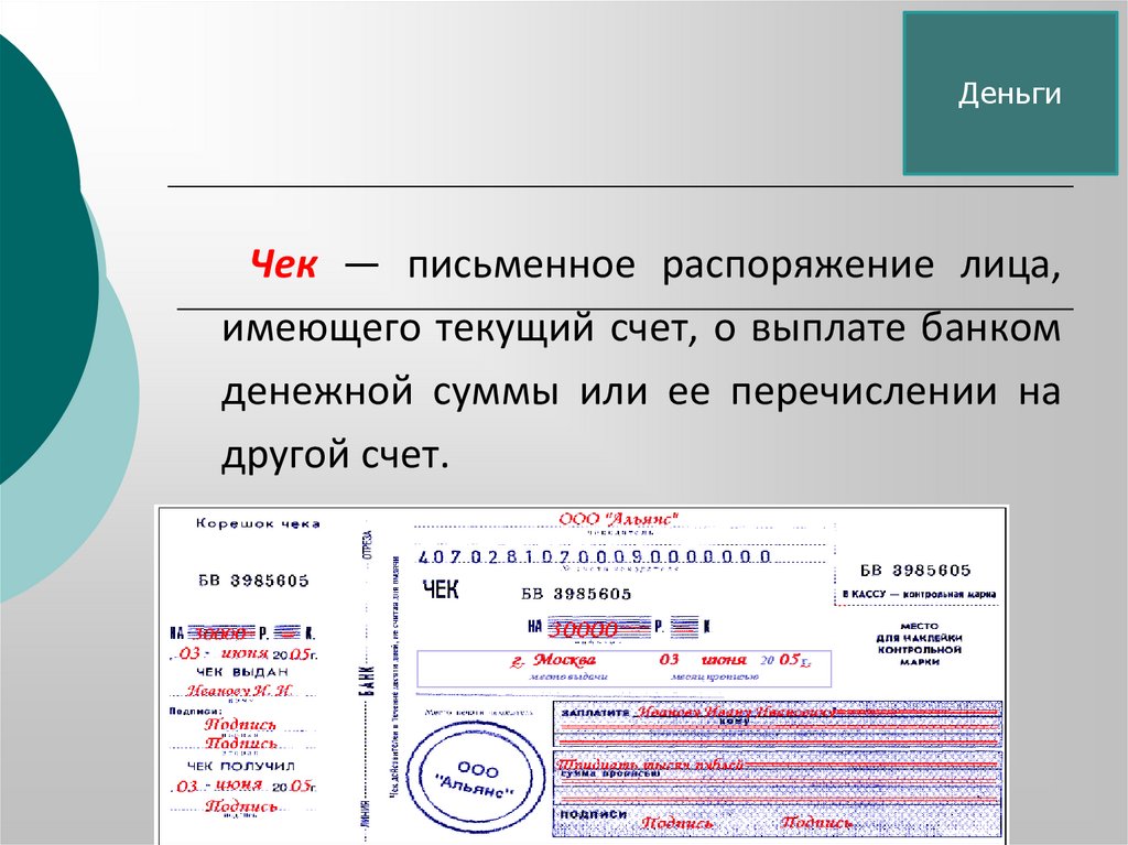- чеки;
