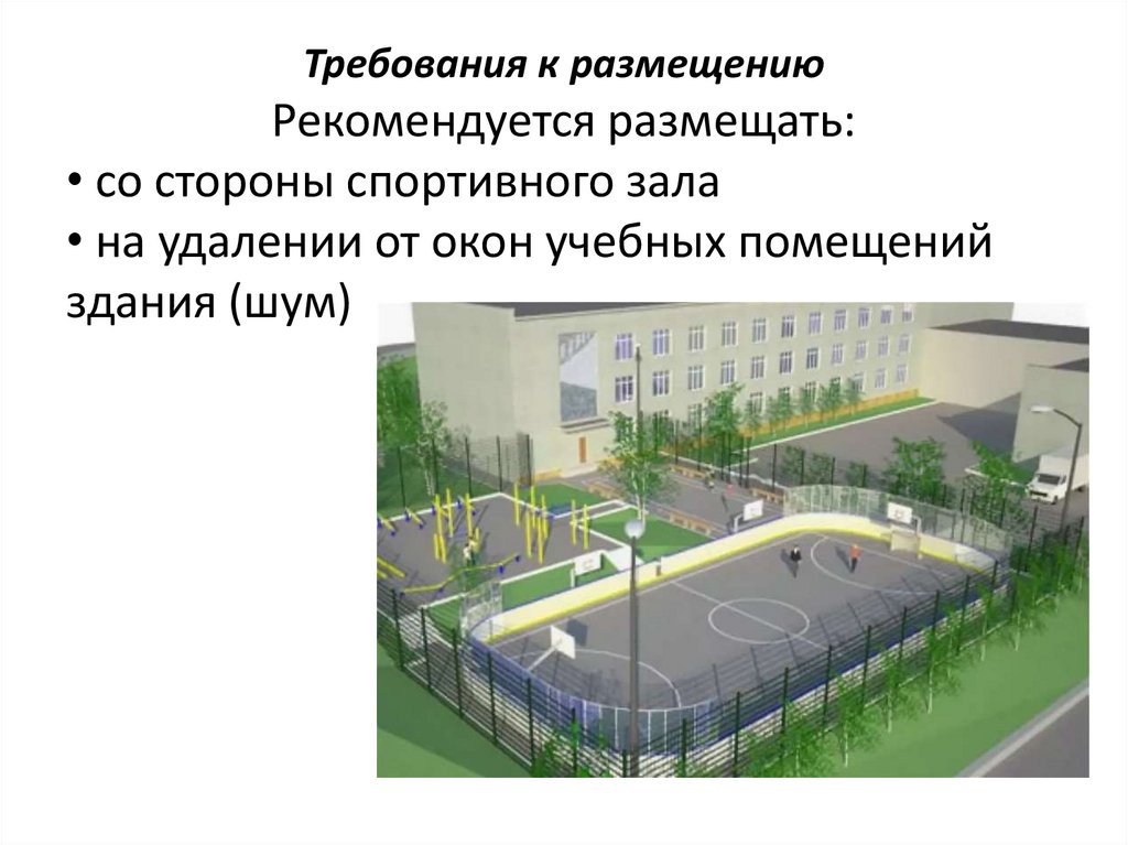 Требования к размещению• размещается в отдалении от спортивной и