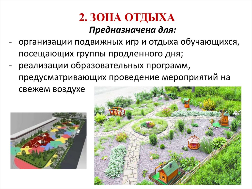 2. ЗОНА ОТДЫХАПредназначена для: