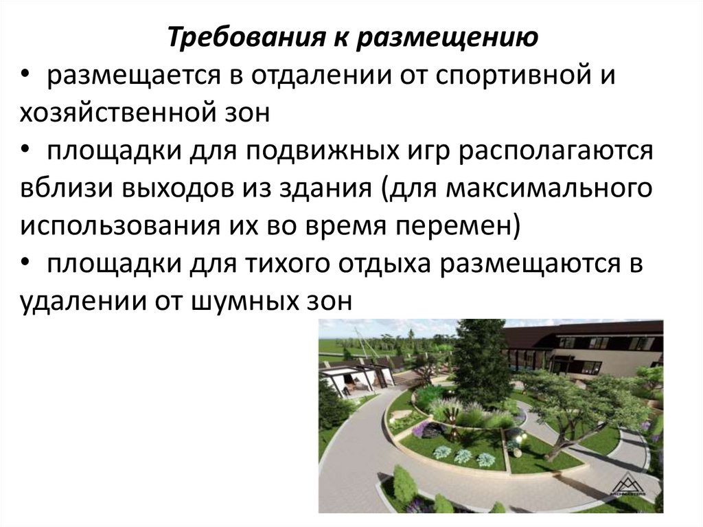 • площадки для подвижных игр располагаются