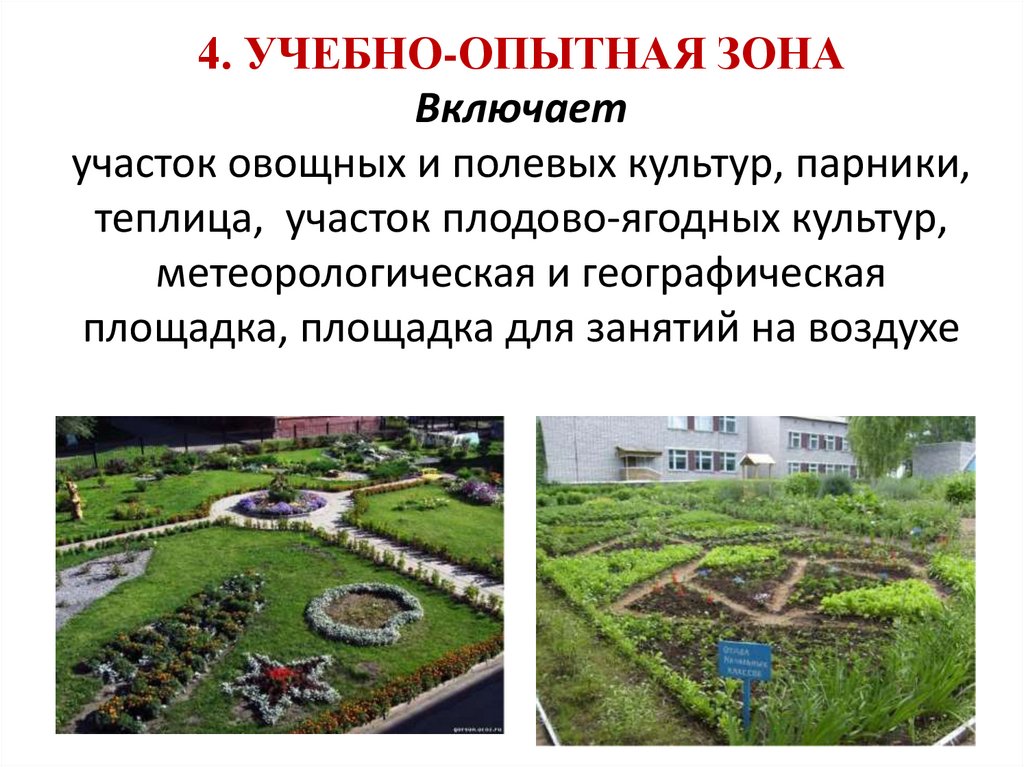 отдельные зоны, а также газоны и декоративные зеленые
