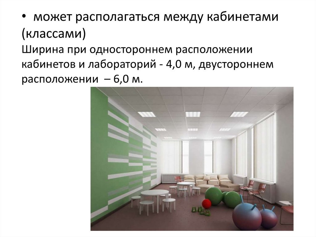 • на удалении от окон учебных помещений