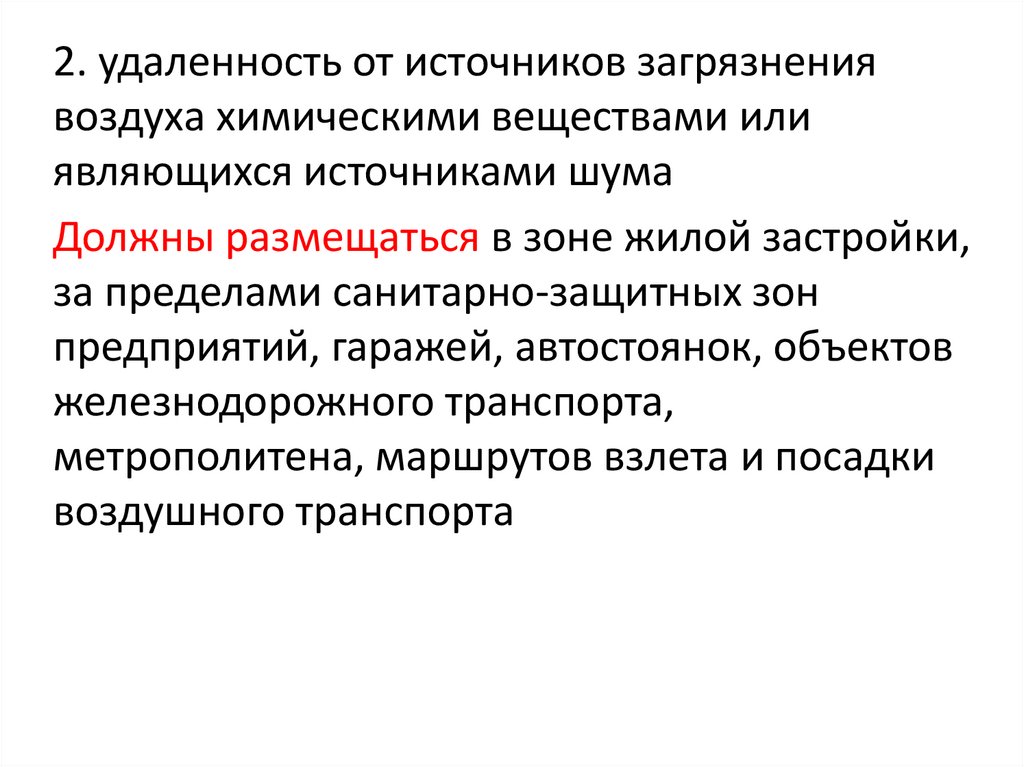 2. удаленность от источников загрязнениявоздуха химическими веществами или
