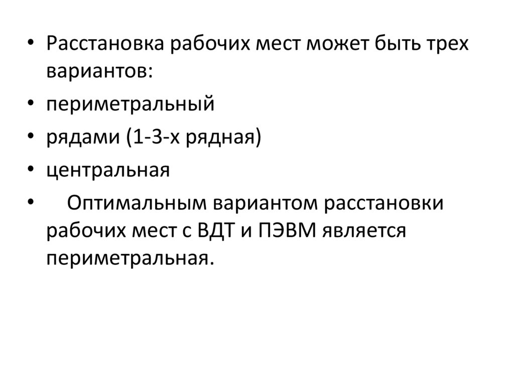 • Расстановка рабочих мест может быть трехвариантов:
