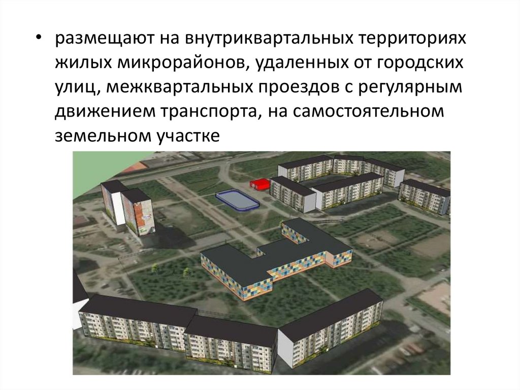 • размещают на внутриквартальных территорияхжилых микрорайонов, удаленных от городских