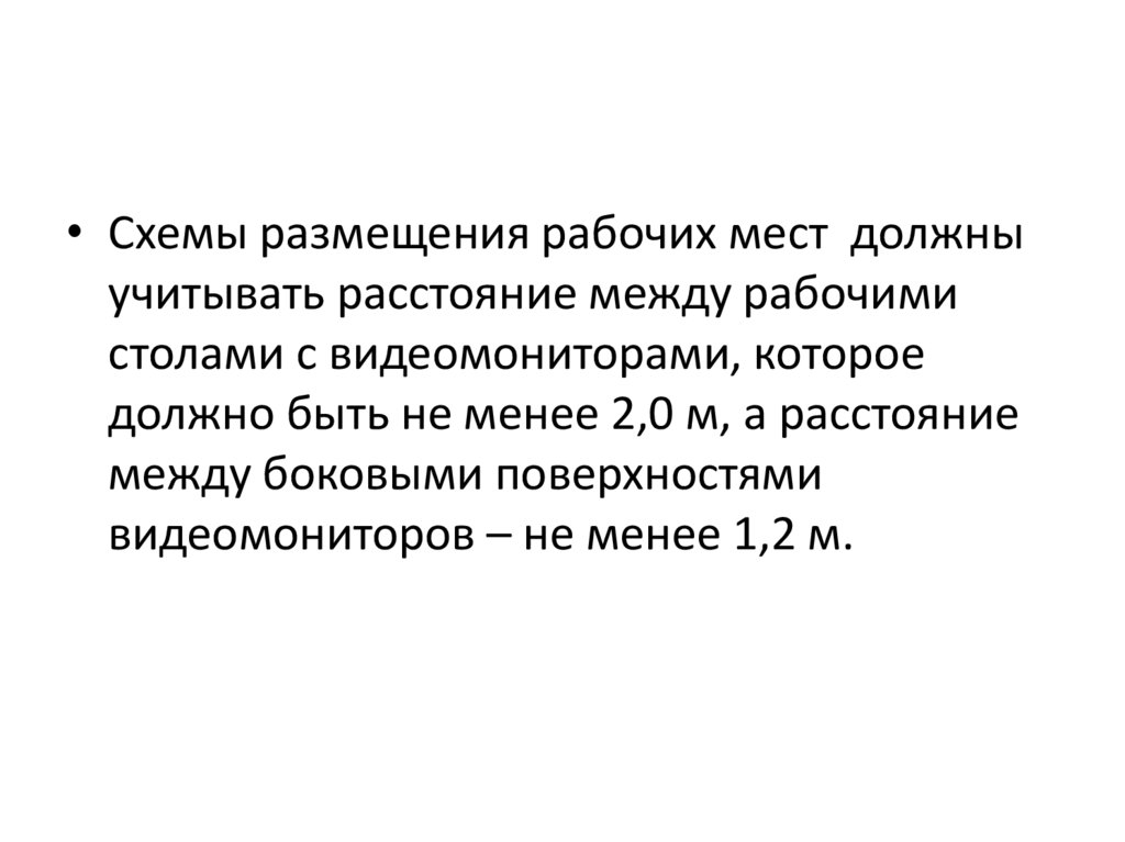 • Схемы размещения рабочих мест должныучитывать расстояние между рабочими