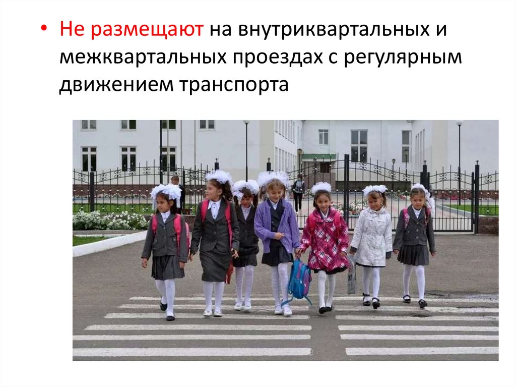 • Не размещают на внутриквартальных имежквартальных проездах с регулярным
