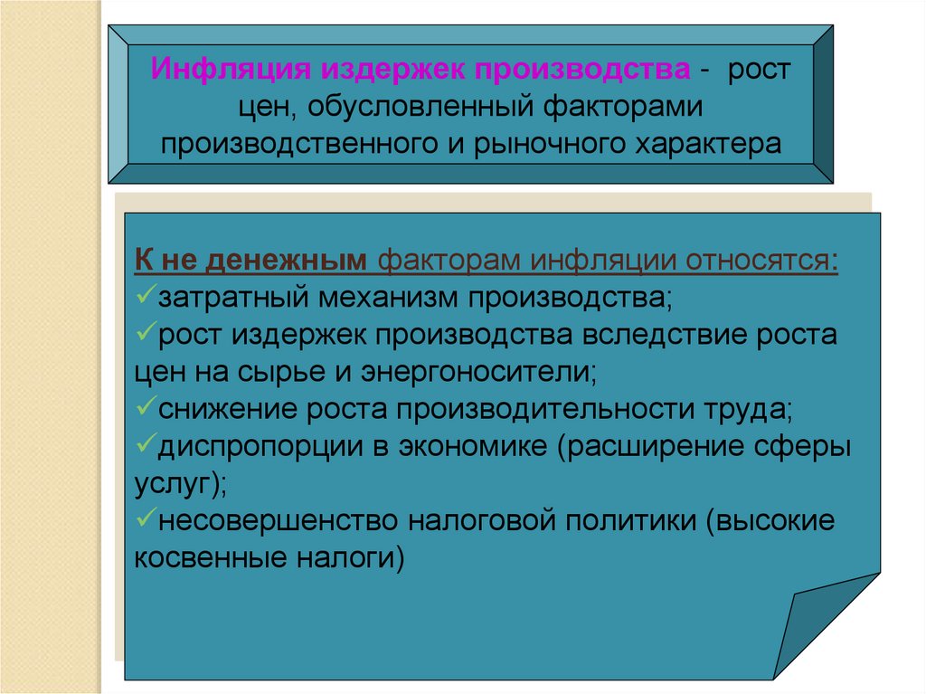 Инфляция издержек производства - ростцен, обусловленный факторами