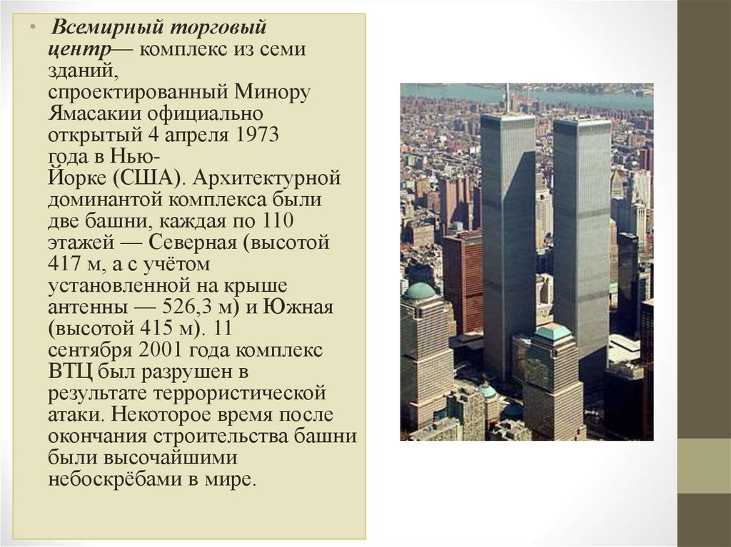 • Всемирный торговыйцентр— комплекс из семи