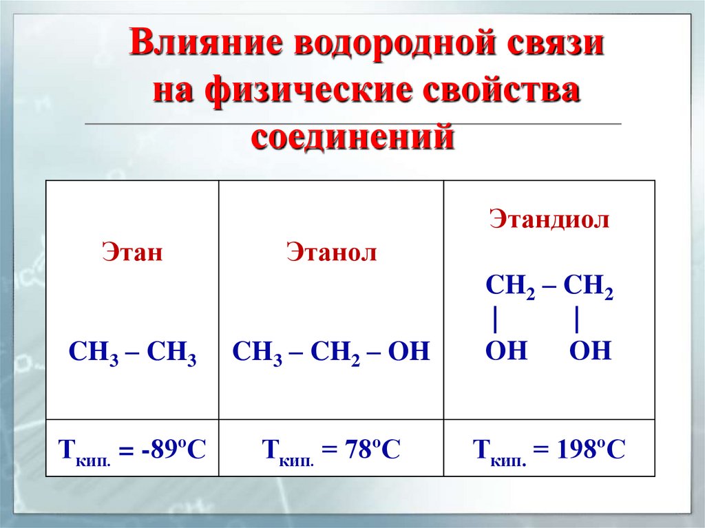 Влияние водородной связина физические свойства